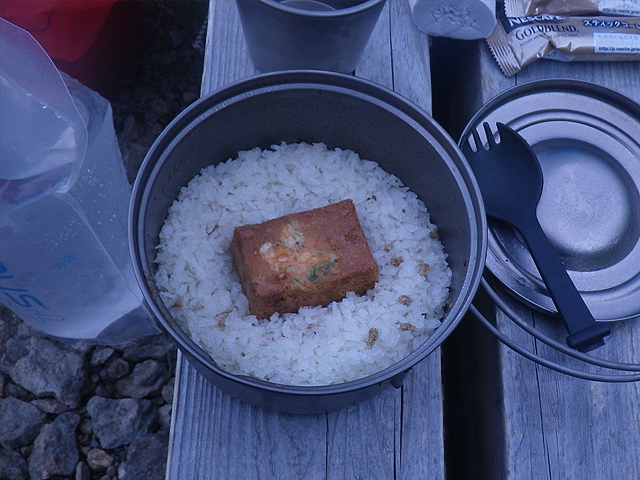 写真にあるように2013年夏季縦走では「大根葉とあみえび」ふりかけも混ぜましたが、正直言って蛇足でした。