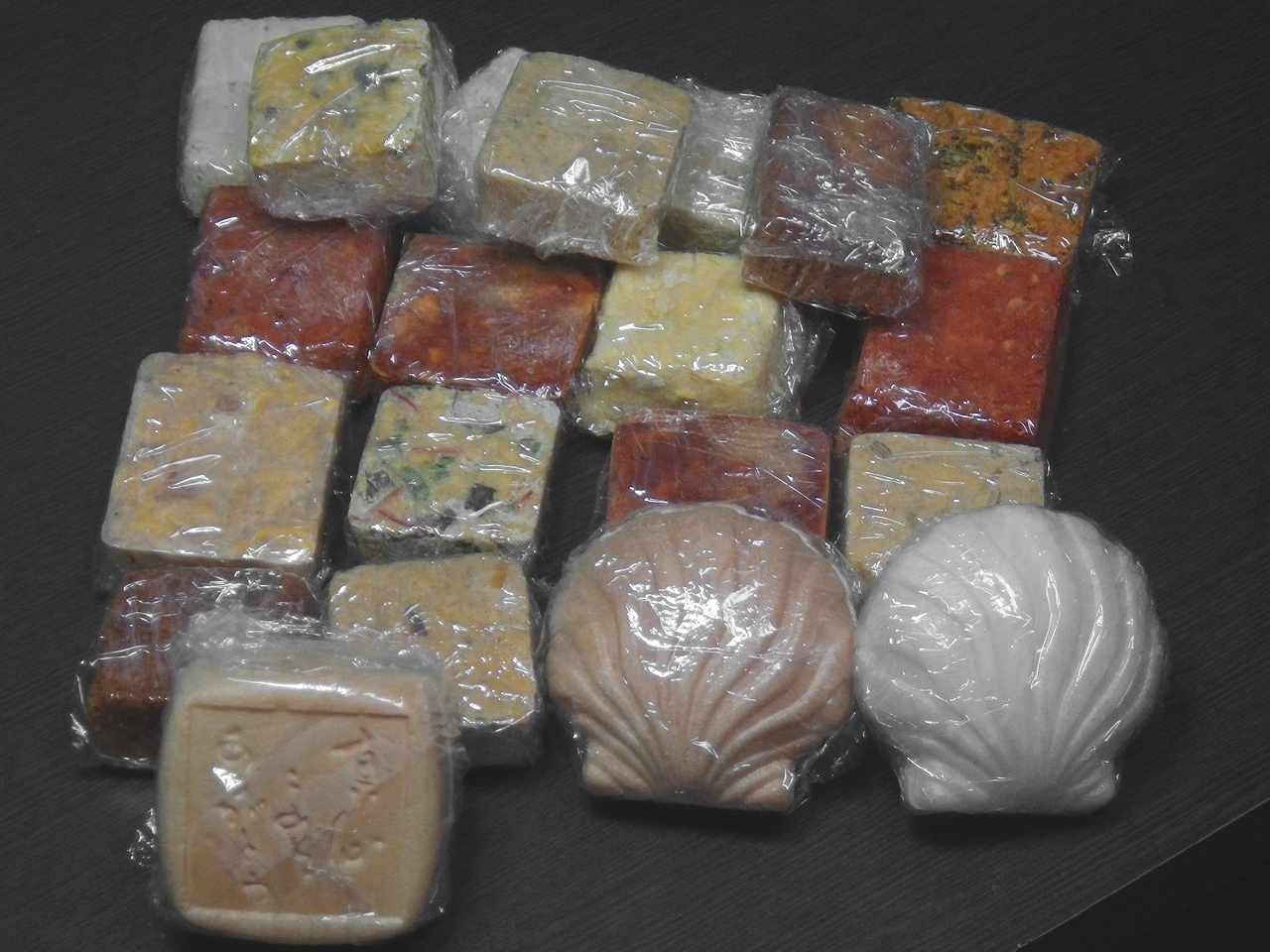 乾燥スープ1つあたりのパッケージ重量は2gほど。包むときに使うラップは約0.5gなので、乾燥スープ1つあたり1.5gも軽量化できます。