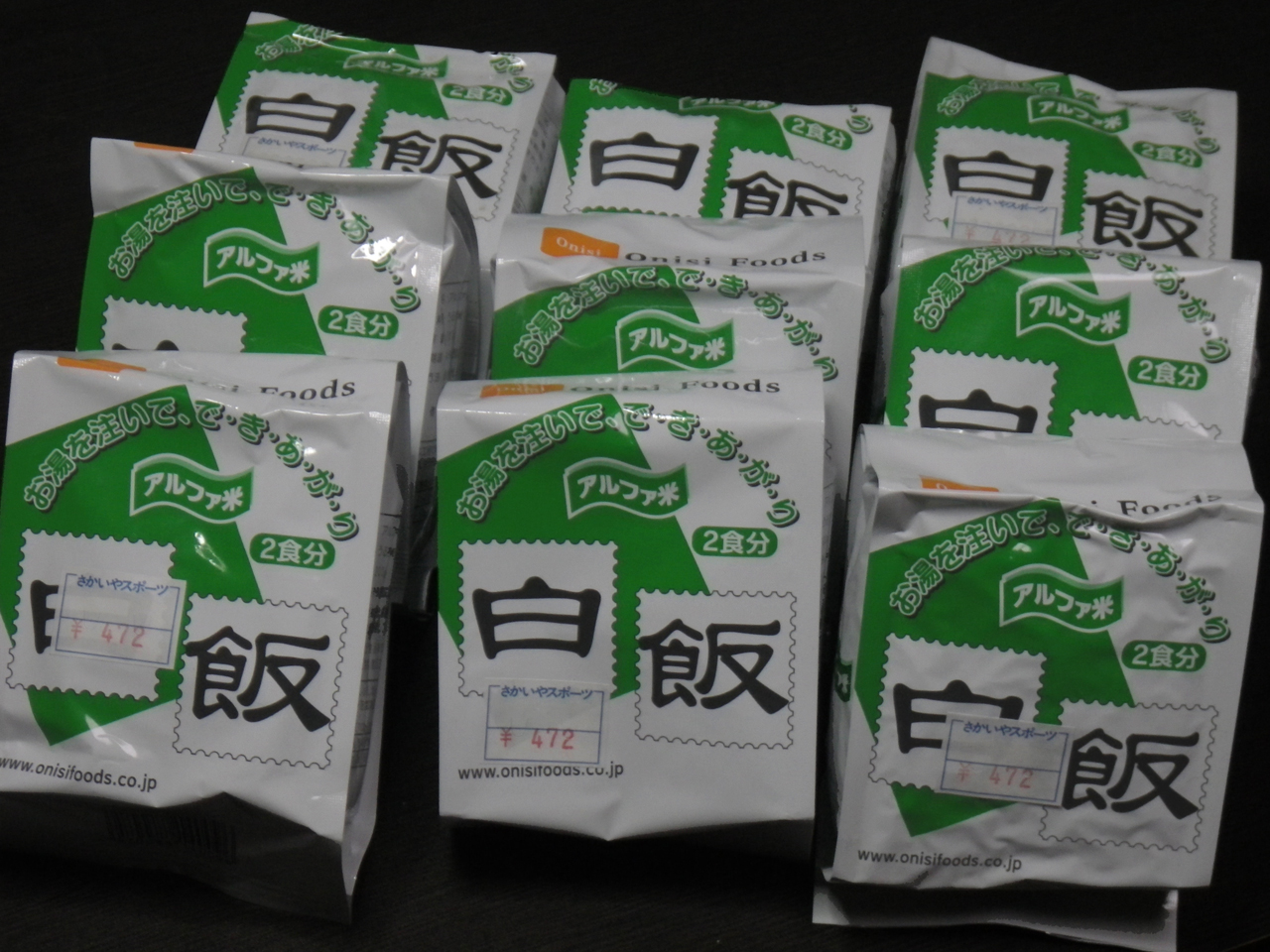 ≫写真の9泊10分のアルファ米200g×9個の場合、-126gからチャック袋42gを加えて、84gの軽量化。